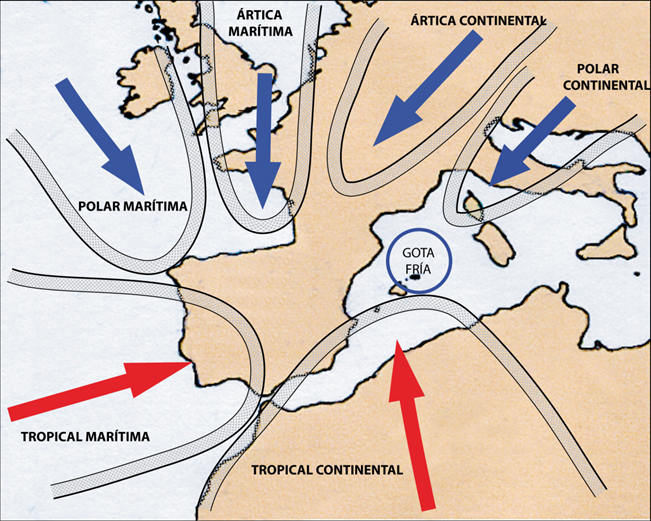 Características: Frío, húmedo e inestable tras atravesar el Atlántico.