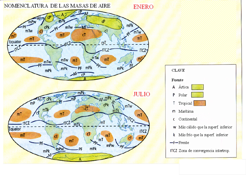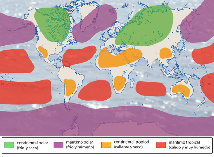 Marítimas (m): Húmedas, formadas sobre océanos.