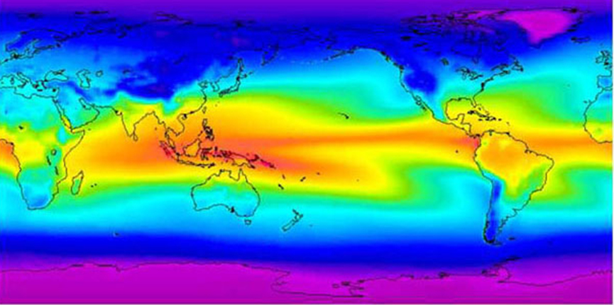 Efectos: Formación de cumulonimbos y lluvias intensas debido a la elevada humedad absoluta.