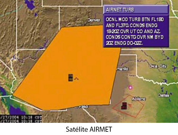 Los AIRMET cubren el engelamiento moderado, turbulencia moderada, vientos sostenidos de 30 nudos o más en la superficie, amplias zonas de techos menores de 1.000 pies y/o visibilidad menor de tres millas, y obscurecimiento de montaña extenso.