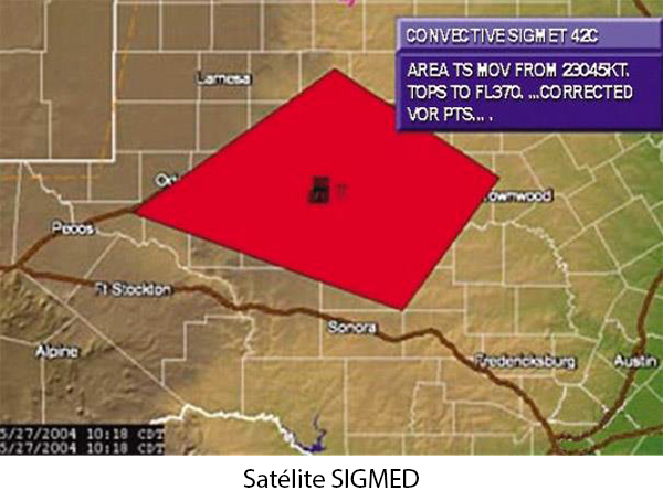 Los SIGMET son avisos meteorológicos emitidos concernientes al clima significativo para la seguridad de todas las aeronaves. Los avisos SIGMET pueden cubrir un área de al menos 8.000 kilómetros cuadrados y proporcionar datos sobre turbulencia severa y extrema, engelamiento severo y polvo generalizado o tormentas de arena que reducen la visibilidad a menos de tres millas.