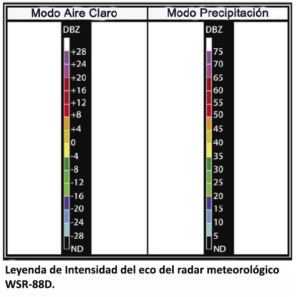 1. El radar WSR-88D NEXRAD, comúnmente llamado radar Doppler, provee observaciones detalladas que informan a las comunidades vecinas del tiempo inminente. El radar Doppler tiene dos modos operativos: aire claro y precipitación. En el modo de aire claro, el radar está en el modo de operación más sensible debido a que la lenta rotación de la antena permite que el radar tome muestras de la atmósfera por más tiempo. Las imágenes se actualizan cada 10 minutos en este modo.